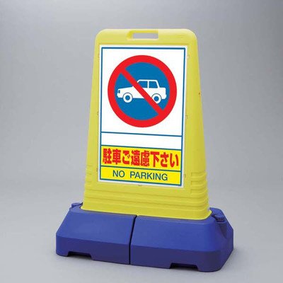 【特長】 樹脂製なので万が一、人や車両が接触しても安心です。表面積が大きいので訴求力が抜群です。 表示内容:駐車ご遠慮下さい メーカー品番:865-401 片面表示:裏面は本体と同一色です。 サイズ:840×470×1100(ウェイト付) カラー:本体/イエロー、ウェイト/ブルー 材質:高密度ポリエチレン 重量:8.3(満水時:約39kg) 表示板サイズ:677×445×1.5厚 表示板材質:透明PET樹脂(裏印刷) 製造:ユニット株式会社