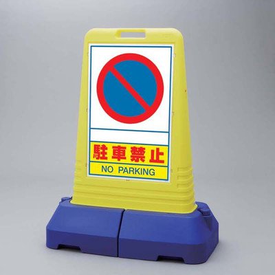 【特長】 樹脂製なので万が一、人や車両が接触しても安心です。表面積が大きいので訴求力が抜群です。 表示内容:駐車禁止 メーカー品番:865-412 両面表示: サイズ:840×470×1100(ウェイト付) カラー:本体/イエロー、ウェイト/ブルー 材質:高密度ポリエチレン 重量:8.3(満水時:約39kg) 表示板サイズ:677×445×1.5厚 表示板材質:透明PET樹脂(裏印刷) 製造:ユニット株式会社