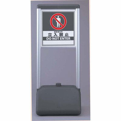 駐車場・各種施設案内表示 サインシックモダンな建物や施設に溶け込む、高級志向のサインデザインです。 【特長】 アルミ材を使用し、美しさと質感を兼ね備えた存在感のあるデザインです。 樹脂製ウォーターウェイト一体型なので、屋内でも使用できます。 移動も便利なキャスター付きです。 コンパクトで視界をさえぎらなく、充分な情報を表示します。 表示:関係者以外立入禁止 メーカー品番:865-901 印刷面:片面 サイズ:410×510×1236mm カラー:グレー、支柱/シルバー(アルトマイト加工) 材質:高密度ポリエチレン、支柱/アルミ押し出し材 重量:6.2kg(満水時:約42.1kg) 表示版サイズ:450×430×3mm厚(表示面サイズ:425×410mm) 表示版材質:アルミ複合板(白) 製造:ユニット株式会社