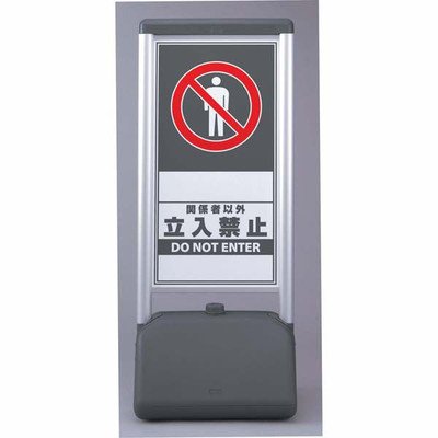 駐車場・各種施設案内表示 サインシック Bタイプホテルや大型施設の雰囲気に合わせた、落ち着きのあるデザインです。 【特長】 アルミ材を使用し、美しさと質感を兼ね備えた存在感のあるデザインです。 樹脂製ウォーターウェイト一体型なので、屋内でも使用できます。 移動も便利なキャスター付きです。 視認性の高い大きな表示案内です。 表示:関係者以外立入禁止 メーカー品番:865-801 印刷:片面 裏白無地 サイズ:410×510×1236mm カラー:グレー、支柱/シルバー(アルトマイト加工) 材質:高密度ポリエチレン、支柱/アルミ押し出し材 重量:6.6kg(満水時:約42.5kg) 表示版サイズ:820×430×3mm厚(表示面サイズ:795×410mm) 表示版材質:アルミ複合板(白) 製造:ユニット株式会社