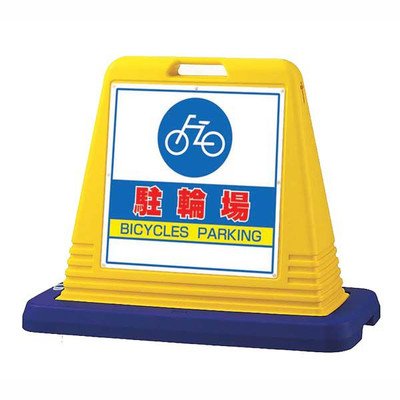 視認性を高め、街の景観にマッチしたデザインに大きな表示で安定感抜群の標識です。 【特長】 樹脂製なので人や車にやさしい安全設計です。 積み重ねて保管が出来る省スペース構造です。 表示内容:駐輪場 メーカー品番:874-071 片面表示:裏面は本体と同一色です。 サイズ:403×835×650mm カラー:イエロー 材質:高密度ポリエチレン 重量:5kg(満水時:約11.4kg) 標識サイズ:445×445×1mm厚 標識材質:透明PET樹脂(穴上3中2下2)裏印刷、白PET樹脂(穴上3中2下2)表印刷 製造:ユニット株式会社