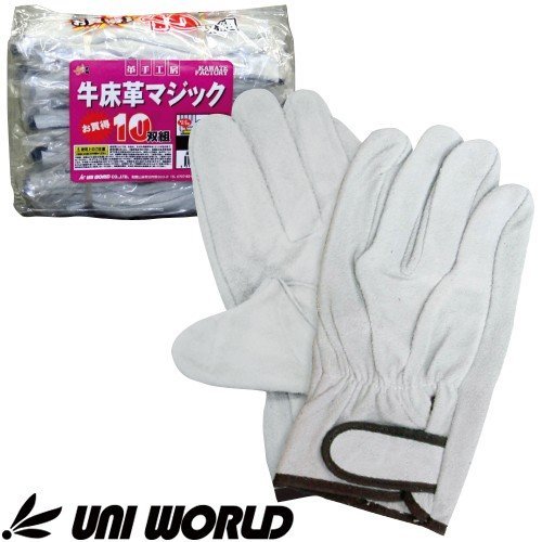 ユニワールド/牛床革 お買い得パック マジック付き/10双セット サイズ:L 品番:824