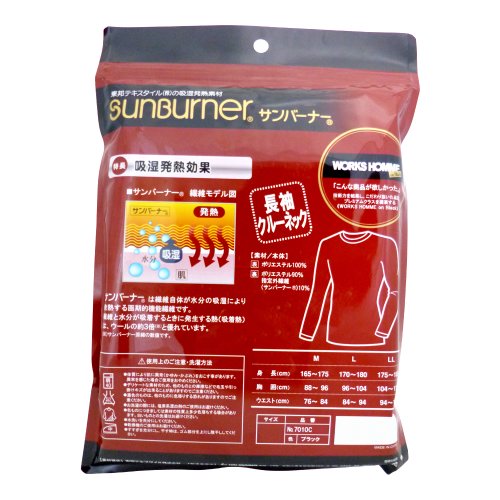 ユニワールド 発熱サンバーナーインナーシャツ クルーネック 黒 №7010C-BK [M]