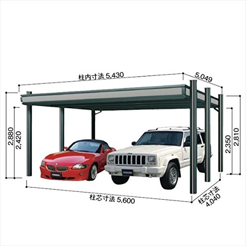 ヨドコウ ヨドカーポ パワード 積雪強度4500Nm2(積雪150cm) 2台用 KDAU-5650 チタンニウムシルバー(TS)