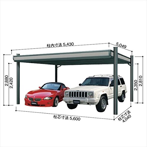ヨドコウ ヨドカーポ パワード 積雪強度3000Nm2(積雪100cm) 2台用 追加棟 KDAS-5650 シミラーブラック(WB)