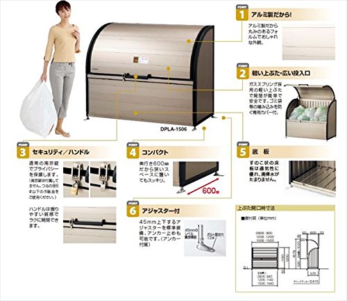 ●1.景観にやさしい印象のアールデザイン。丸みのあるフォルムで景観にやさしい印象を与えるおしゃれな外観。2.優れた耐久性本体をアルミ材、金具とビスをステンレス製にすることで高耐久性を実現。3. 軽い上ぶた ・ 広い投入口ガススプリングを採用し、上ぶたの開閉が簡単で安全です。また開口部が大きく開き、ゴミの投入及び収集が容易にできます。4.コンパクトサイズ狭い場所にもすっきり納まるように、奥行きを600mmとしています。