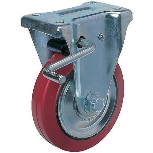 ヨドノ プレス製固定金具ブレーキ付赤ゴム車 130φ RWKB130 プレート式ゴムキャスター(軽・中荷重用)