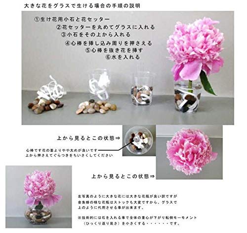 - 剣山や給水スポンジのような使いです。大きさの加減が自由に出来ます。写真の最後を参照下さい。磨き小石のセットも別売でありますどうぞご利用ください。