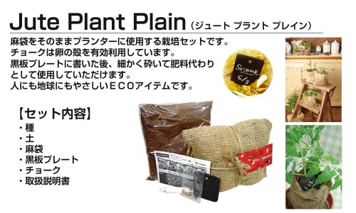 「ジュート」で作られた袋は、土に埋めると完全に分解されます。この袋をプランターとして利用したのが、「JUTE PLANT」です。
