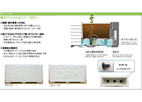 ●大容量貯水の底面給水機能付きタイプのプランター!軽くて丈夫で景観と調和する豊かな質感が特徴です●場所を取らない省スペースタイプです●公共施設や病院・店舗・会社・町内美化など幅広く利用できます●スリム設計のため軒下にも利用できます●土容量:46 ●水容量:26 ●【サイズ】●91×33×42●8.3kg●【素材】●ポリエチレン、ポリプロペン、合成ゴム