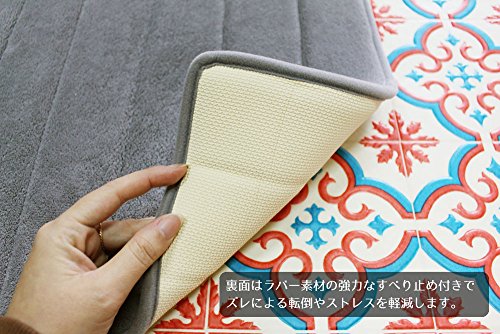 - 裏面はラバー素材のすべり止めで、ズレによる転倒を防ぎ、ストレスを軽減します。また、水分が浸透しにくく床のカビの発生を防ぐので、お風呂場、洗面所、キッチンに最適です。