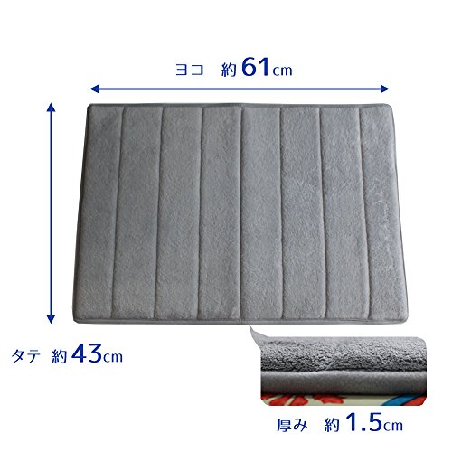 サイズ:約ヨコ61×タテ43×厚み1.5cm 【ダークグレー】 浴室 バスマット キッチン 玄関 足元マット ふかふかマイクロファイバー 低反発 ウォッシャブル すべり止め ノンスリップ