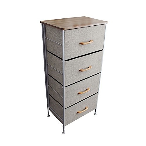 4段チェスト 組立簡単 【木製取っ手ボックスタイプ】 木目調天板 アジャスター付き 幅45x奥行き30x高さ99cm アイアン フレーム ホワイト 衣装ケース 引き出し 収納ボックス ケース クローゼット 押入れ 収納