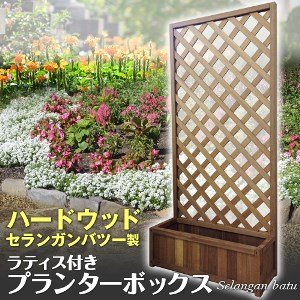 - プランターボックスが付いたラティスフェンスです。簡単な組立で、ウッドデッキや玄関先、アプローチなど様々なシーンで活躍できます!丈夫なセランガンバツー材なので、安心してお使いいただけます。
