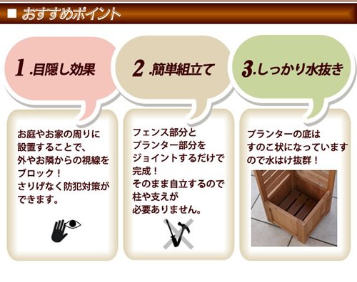 1台二役!フェンスとプランターボックスが一体となった木製フェンス。