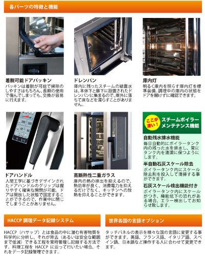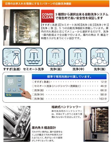 【温度設定範囲】スチーム:20~99℃ / コンベクション:20~300℃ / コンビモード:20~250℃ / 再加熱:20~180℃(※外気温より低い温度にはなりません)