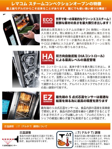 - レマコム スチームコンベクションオーブンなら、【焼く】【煮る】【蒸す】【炊く】【炒める】【揚げる】 が一台でOK!