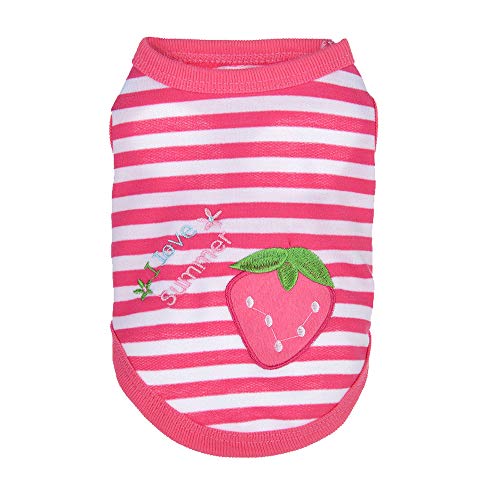 レンコス(Lemcos)ペット 服 秋冬 小型犬猫用 イチゴ 図案 縞模様 犬洋服 コート 綿製 可愛い 散歩 暖かい 防寒 秋冬 犬服 アパレル 子犬 コスチューム プレゼント