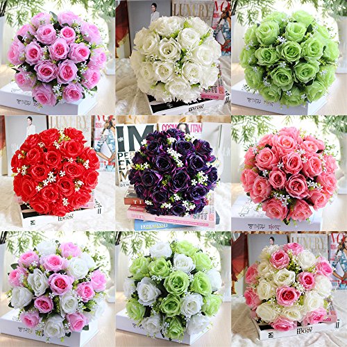 レンコス(Lemcos) バラ 造花 人工観葉植物 飾りブーケ ウェディング花束 インテリア プレゼント 綺麗 部屋飾り 気分転換 結婚式・美術館・ホーム・庭園・キッチン・オフィス・喫茶店