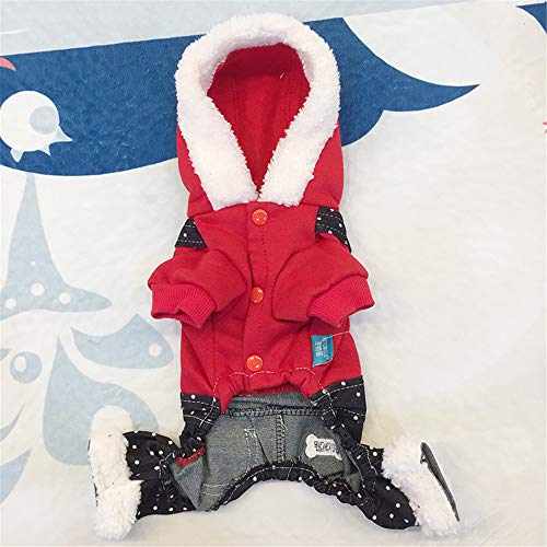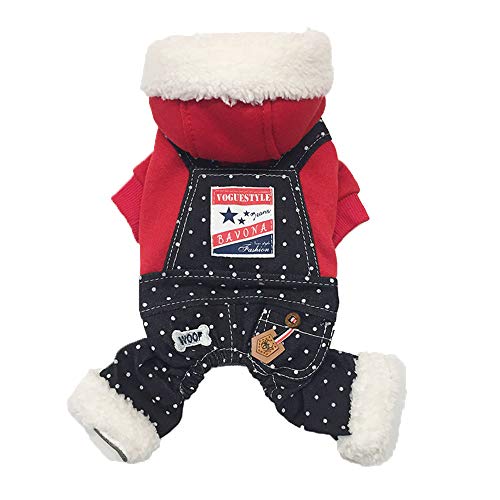レンコス(Lemcos)犬の服 可愛いジーパン 秋冬服 フード付き ドッグウェア可愛い ストライプ ペット犬服Tシャツ ドット小型犬 中型犬 猫用 洋服 タンクトップ 春夏秋服 2色5サイズ選択可能