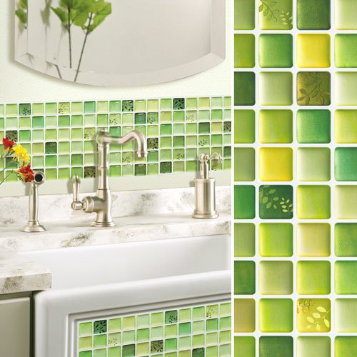 【モザイクタイル シール モザイクタイル シート ガラス風】3Dシール モザイクタイルシール4セット リーフグリーン(B606-4-S3)