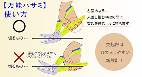 - 万能ハサミのグリップは女性でも使いやすい設計となっており、軽い力で扱うことが出来ます。