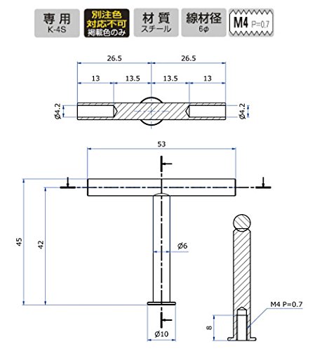 こぼれ止め4φ線材(K-4S)設置用、T字型中止まり式中間金具