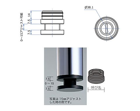 ネジ規格:規格外ネジ採用(アジャスト寸法0~15mm)