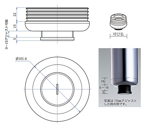 ネジ規格:規格外ネジ採用(アジャスト寸法0~15mm)