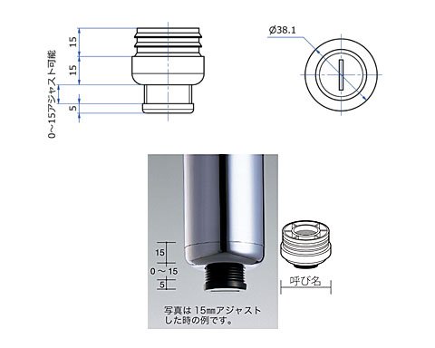 ネジ規格:規格外ネジ採用(アジャスト寸法0~15mm)
