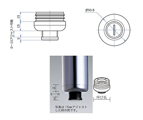 ネジ規格:規格外ネジ採用(アジャスト寸法0~15mm)