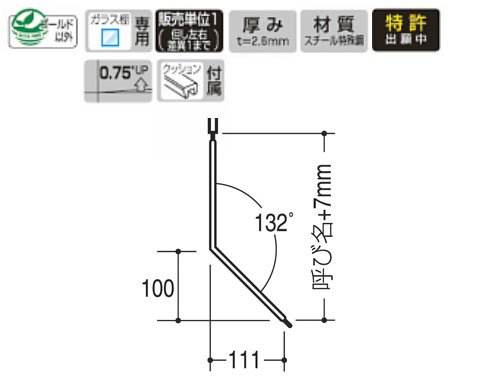 スリット穴掛け式棚等設置システムの、ガラス棚専用腕金具(先端前ズレ防止構造付き、ブラケット先端部が棚板の内側に入る曲げ加工付き)