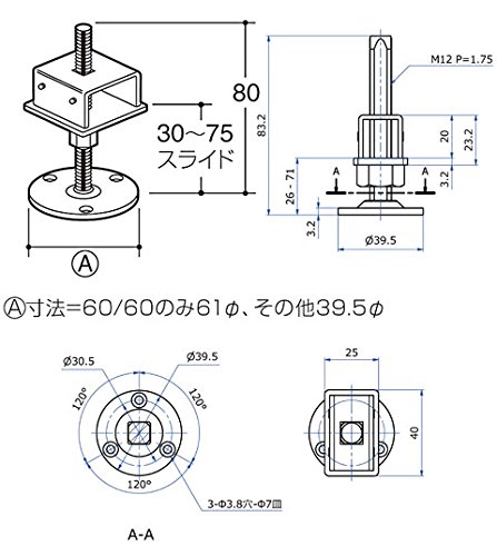 高さ調整(アジャスト)可能床面側金具