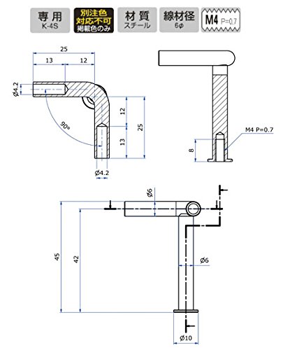 こぼれ止め4φ線材(K-4S)設置用、T字型90度コーナー金具