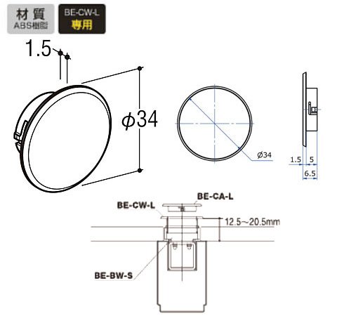ベルラボード直接穴あけ式壁面施工用化粧キャップ、ラージタイプ(シャフト未装着穴かくし用)