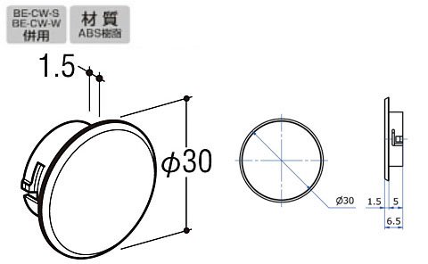 ベルラボード直接穴あけ式壁面施工用化粧キャップ、スタンダードタイプ(シャフト未装着穴かくし用)