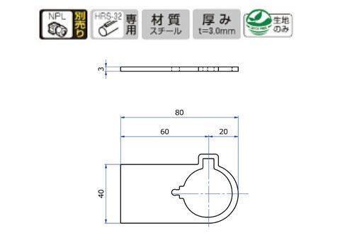 ハンガーロールバー32(HRS-32)を設置するための特注腕金具製作用、溶接用先端ピース(但しパイプ振れ止めNPLは別売り注意)
