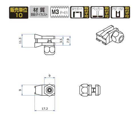 対応ブラケット(使用可否)については各相手製品要確認、また爪側使用の場合抜け止めとの併用不可の場合もあり合せて要確認