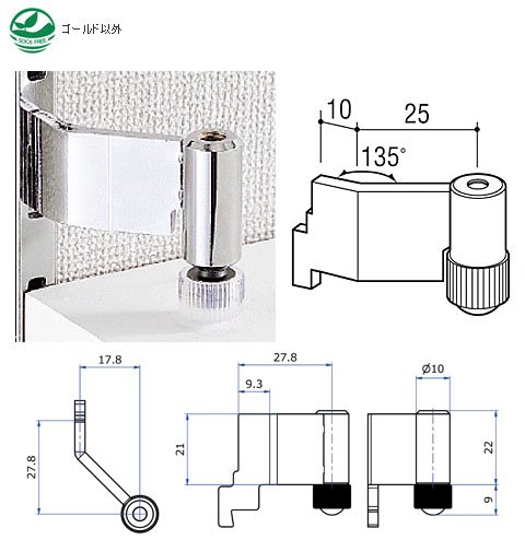 サポート装着用スリット穴掛け式棚等設置システムの内々独立仕様用、木棚板押さえ金具