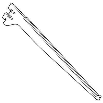 スリット穴掛け式棚等設置システムの、ガラス棚専用腕金具(先端前ズレ防止構造付き)