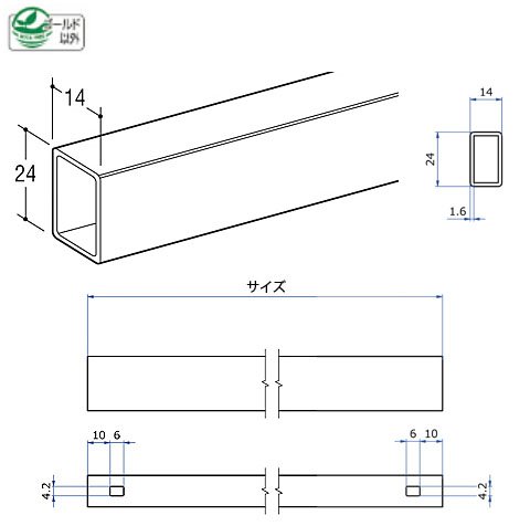 Z加工(穴あけ加工)付き(但し切断した場合、切断した側のZ加工は消滅するため、必要な場合は再加工必要。またその際、適正再加工には8mmの切りしろが必要)