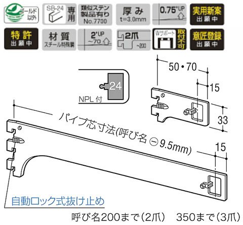 ロイヤル Sハンガーブラケット(外々用)呼名300 クローム A-182S