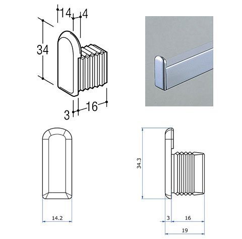 Sバー(SB-24・SB-32)の両端処理用、打ち込み式こぼれ止めプレート付きフタ(化粧、およびフック等落下防止用)