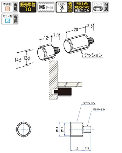 埋め込みダボ式ダボシステム用、ガラス棚板設置用ダボ