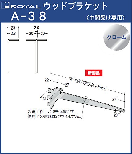ウッドブラケット 木棚 棚受 【 ロイヤル 】クロームめっき A-38 呼び名:300[ 中間受け専用 ]