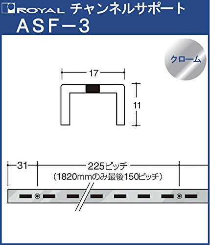 チャンネルサポート 棚柱 【 ロイヤル 】クロームめっき ASF-3 -1820サイズ1820mm【17×11mm】シングルタイプ『日時指定・代引は不可』