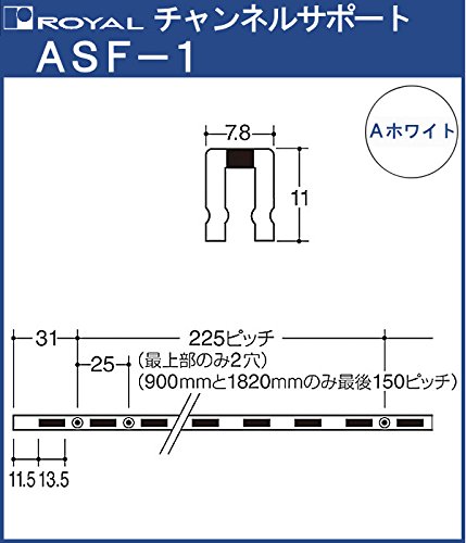 チャンネルサポート 棚柱 【 ロイヤル 】Aホワイト塗装 ASF-1 -1500サイズ1500mm【7.8×11mm】シングルタイプ