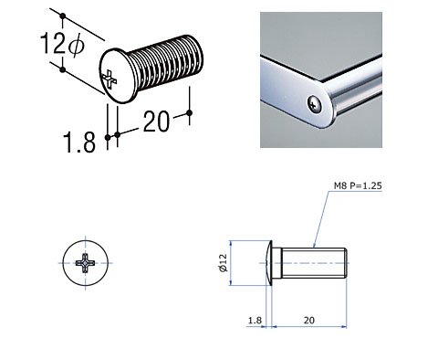 ロイヤル 飾りボルト Aニッケルサテン(10個価格) M8A