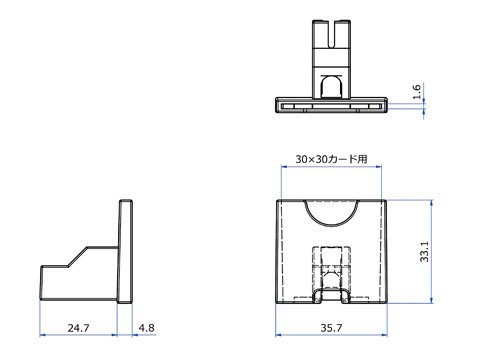 6φ線材製ロッドフックの一部(6R・6RP・6RU・SUS-6R)、およびプライスカード立て(P-6R、P-6S)装着用、プライスカード設置ホルダー(各フックの先端45°曲げ部、または90°曲げ部に装着可能)