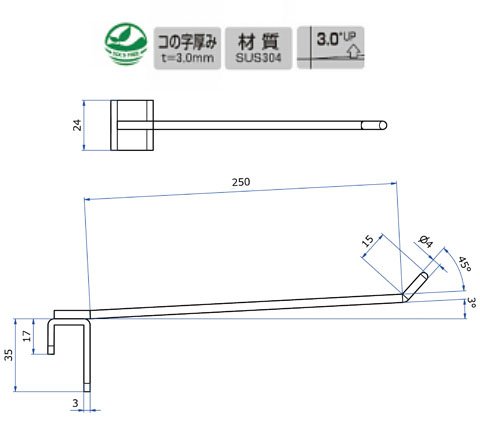 ロイヤル ステンレスロッドフック4径 呼名250 ステンレスヘアーライン SUS-4R
